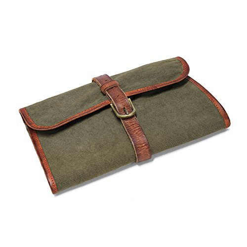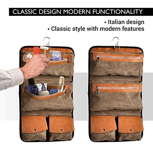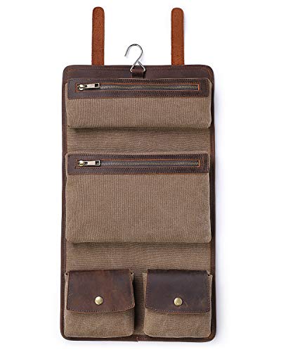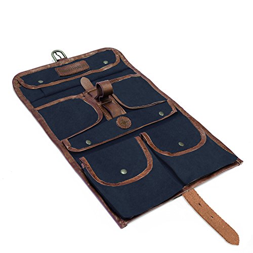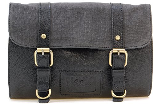 La trousse de toilette homme en toile canvas et cuir PU (synthétique) avec boucles à dérouler et à suspendre sans modération :