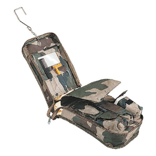 Enfin dans un design plus vintage et baroudeur la trousse de toilette en toile de parachute à enrouler et dérouler.